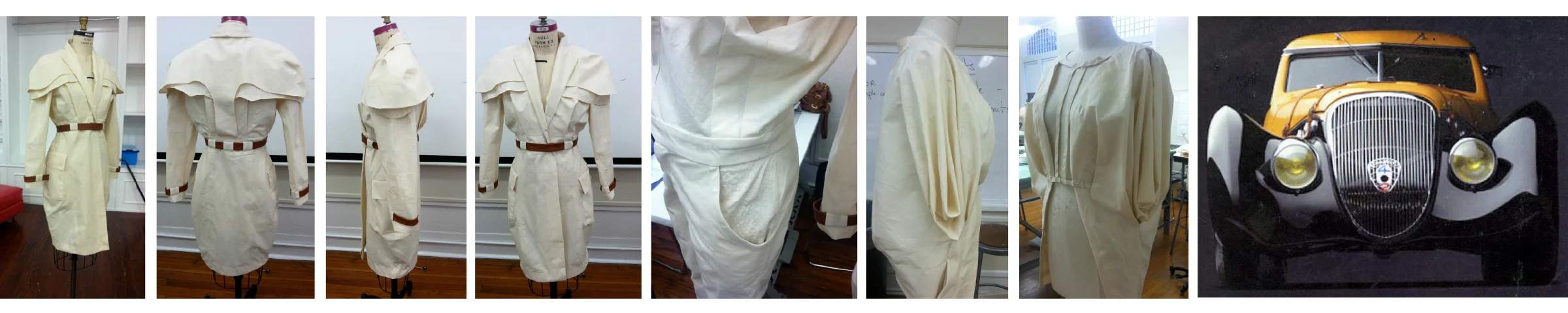 By a series of translations of aesthetics and tectonics used in fashion, furniture, and architecture, investigations into parallel practices transformed line, volume, and space into functional pieces of design. Flexible function, spatial dynamic, and historic reference to the lines found in vintage luxury car design and lingerie are visible expression of the designers collection.